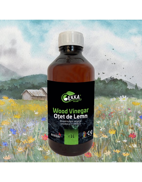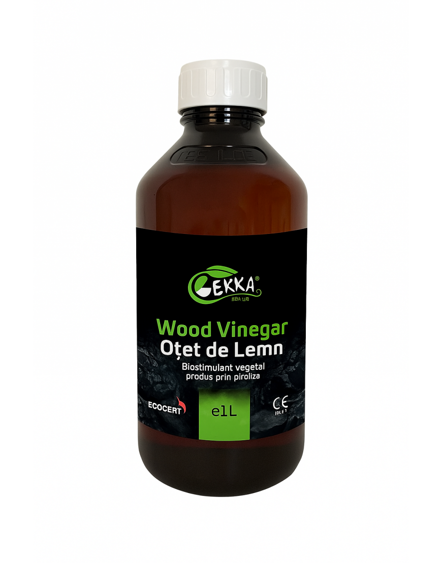 Oțetul de lemn GEKKA Conține peste 200 de compuși organici. Pulverizat pe frunziș sau tulpină, întărește rezistența naturală a plantelor, în timp ce atunci când este aplicat pe sol, îmbunătățește viața solului și accelerează dezvoltarea rădăcinilor. Oțetul de lemn (Wood Vinegar) este un Biostimulator de creștere naturală. Oțetul de lemn are efecte remarcabile asupra creșterii plantelor și sănătății solului.