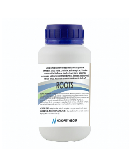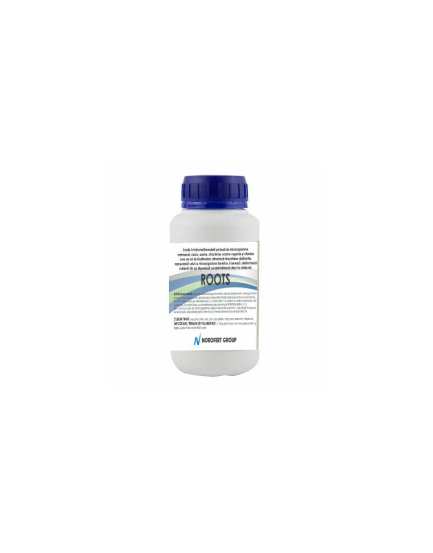 ROOTS (monodoză) este un produs ecologic inovativ care are rol preventiv, de populare a solului cu microorganisme, de stimulare a dezvoltării rădăcinilor şi de activare a elicitorului. ROOTS (monodoză) se administrează ca atare direct la rădăcină, nefiind necesare alte operaţiuni, în acelaşi timp cu administrarea uleiului mineral (FORTIS MINERAL T.P.). Prin conţinutul său de microorganisme asigură protecţia pomului/arbustului/butaşului, aerează solul, disponibilizează nutrienţii şi activează sistemul natural de protecţie.