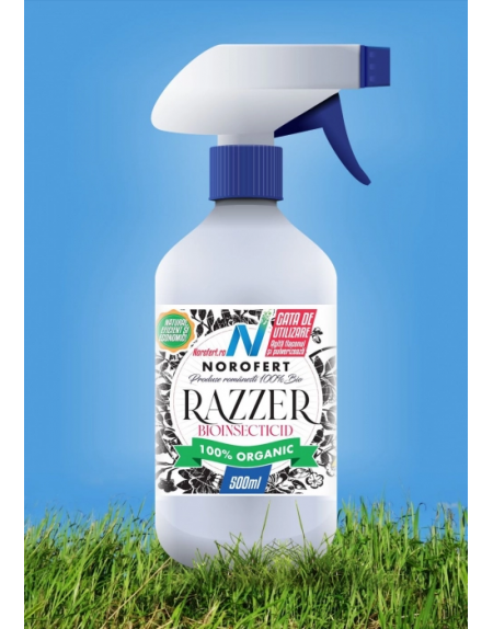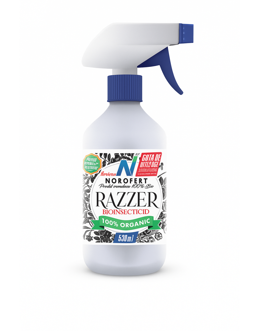 RAZZER este un produs ecologic formulat pe bază de uleiuri vegetale cu acțiune directă și repelentă asupra unui spectru larg de insecte dăunătoare plantelor.