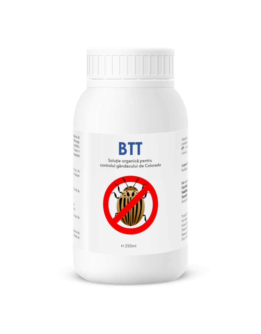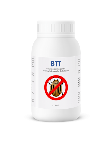 BTT este un agent biodinamic de daunare impotriva gandacului de colorado. Acest produs este obtinut prin procedee clasice biodinamice de productie, prin fermentarea materiei vegetale cu microorganisme cu rol antagonist impotriva anumitor tipuri de daunatori.