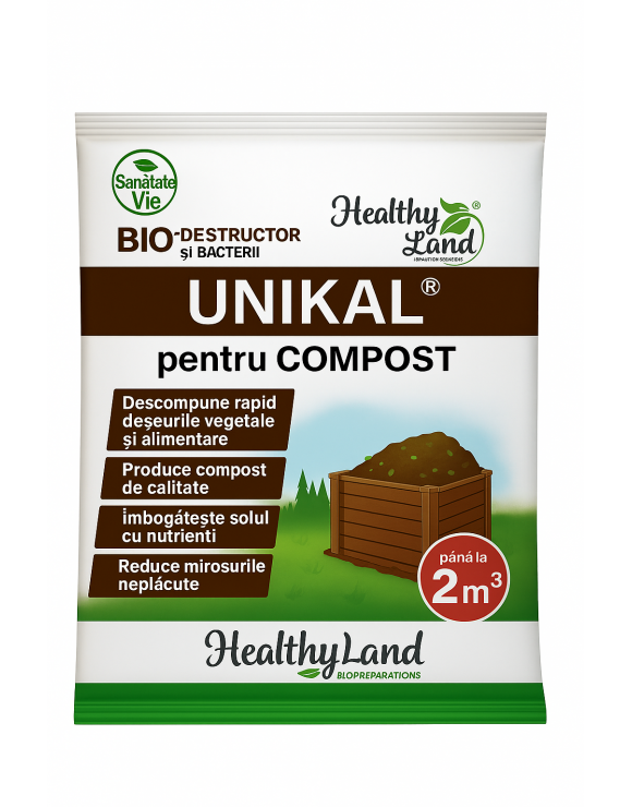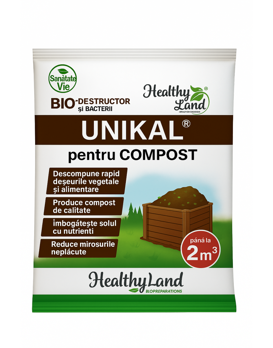 Biodestructor pentru accelerarea maturării compostului de calitate, dezinfectant pentru agenții patogeni fungici și bacterieni, elimină mirosurile neplăcute.