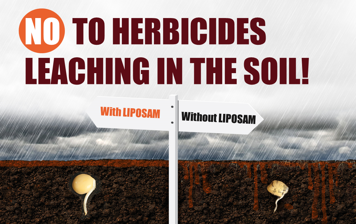 Una dintre cele mai eficiente soluții la aceste probleme este Liposam®, un adeziv natural pe bază de biopolimeri. Proprietățile lipogene bune și prezența diferitor grupe funcționale de polizaharide în compoziția Liposam® asigură o buna retentie a soluției de lucru pe suprafața solului și previn spălarea erbicidului. În plus, eficacitatea pesticidului crește în condiții, optime pentru germinarea buruienilor, atunci când acestea rasar în 3-5 zile de la ultimul tratament sau însămânțare a solului.